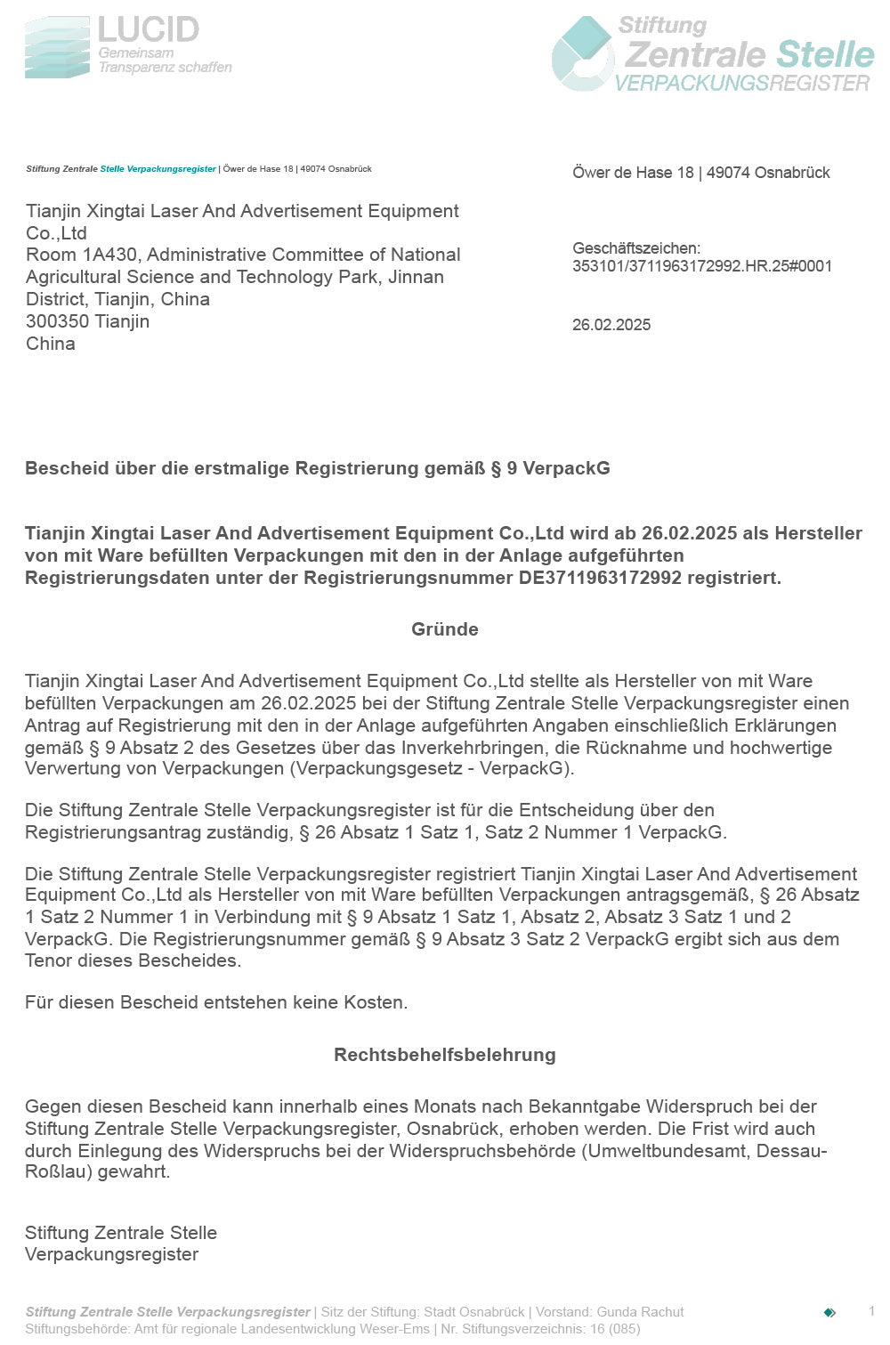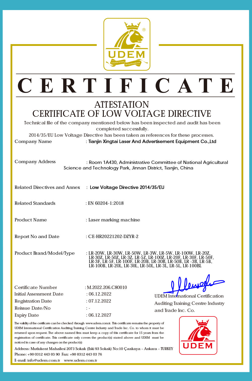 Tianjin Xingtai Laser and Advertisement Equipment Co.,Ltd Located in the National Agricultural Science and Technology Park in Tianjin Jinnan District. Currently, the company primarily manufactures laser engraving machines, laser cutting machines, fibre laser marking machines, UV laser marking machines, CO2 laser marking machines, laser welding machines, jewellery laser welding machines, and laser glass cutting machines.