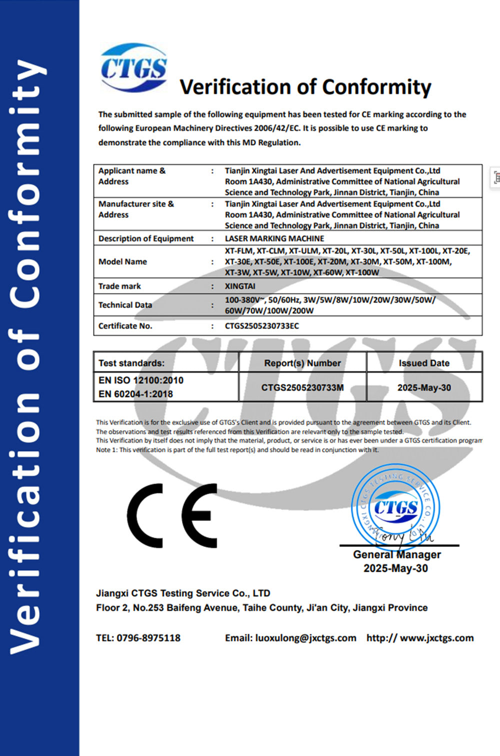 Currently, Xingtai Laser has obtained international CE certification and SGS certification. We sincerely welcome new and existing customers to continue collaborating with us and embrace a brighter future together.